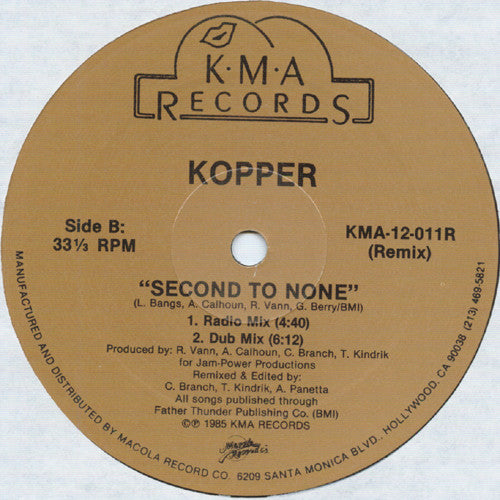 Produced for Jam-Power Productions © ℗ 1985 KMA Records The "R" in KMA-12-011R is for Remix. The Original release is <a href="">KMA-12-011</a>