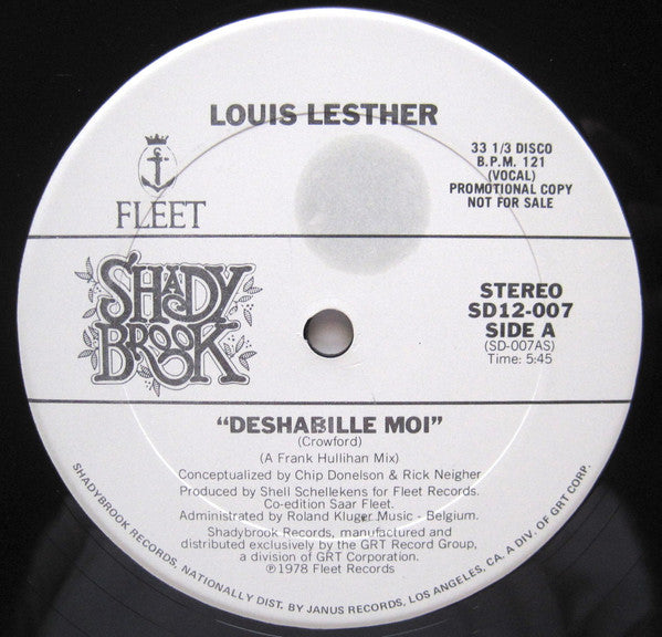 Promo, white (non-standard) labels. 12" housed in picture sleeve. Conceptualized by Chip Donelson & Rick Neigher. Produced for Fleet Records. Co-edition Saar Fleet. Administrated by Roland Kluger Music-Belgium. (P)1978 FLEET Records. Mastered at A&M Studios. Special thanks to the Ice Palace, N.Y.C.