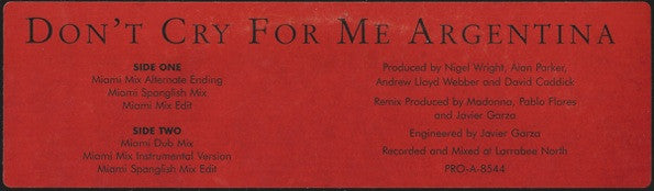 B2. Don't Cry For Me Argentina (Miami Mix Instrumental Version) 6:55