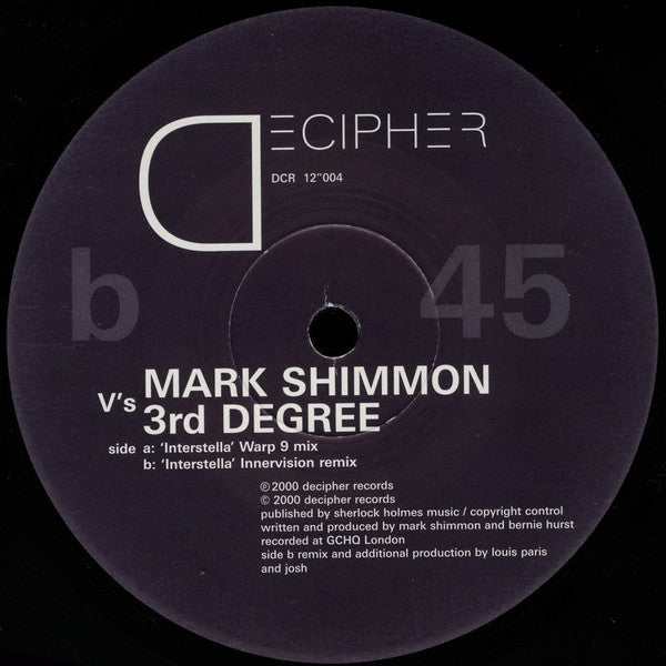 Mark Shimmon v's 3rd Degree* : Interstella (12")