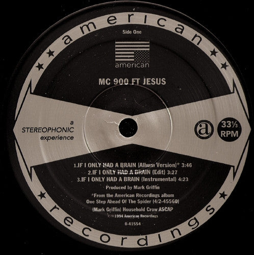 B: Non-Album Track "If I Only Had A Brain" available on the American Recordings album "One Step Ahead Of The Spider". Available on Cassette and Compact Disc (4/2-45560) Made in U.S.A. The signature in the runouts is indecipherable (see image).