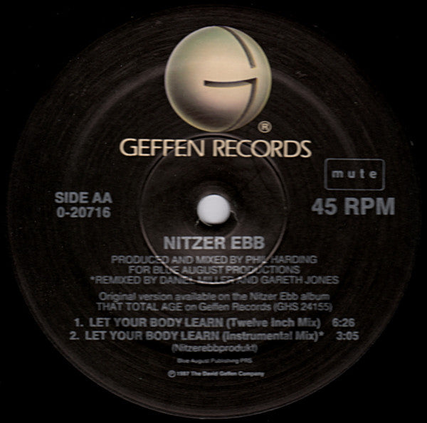 Sides are labelled AA and A. Recorded at The Greenhouse Recording Studio, London. Tracks AA1 and A mixed at PWL Studios, London on the SSL SL4000E. Track AA2 remixed at Hansa Studio, Berlin. Blue August Publishing PRS. Manufactured exclusively by Warner Bros. Records Inc. ©1987 The David Geffen Company. ℗1986, 1987 The David Geffen Company. Made in U.S.A.