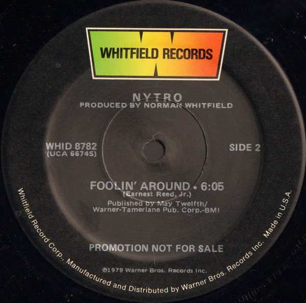 This version has a sticker with release information on the stock Warner Bros. Disco cover. A longer (12:42) 12" promo exists with the same release # [r=2358481 This is an alternative edit from the tracks 'Nytro Express' and 'Return to Nytropolis' that appear as one track on the [m156228 album. This version has a slightly tighter mix and is pitched up +/- 6% from the longer album version. The tracks cuts short 'Nytro Express' to jump to the percussive 'Return to Nytropolis' halfway through the track. Printed on labels: Published by May Twelfth/Warner-Tamerlane Pub. Corp.-BMI From the Whitfield Album WHK 3275 156228 Promotion Not For Sale ℗1979 Warner Bros. Records Inc. Whitfield Record Corp. Manufactured and Distributed by Warner Bros. Records Inc. Made in U.S.A.