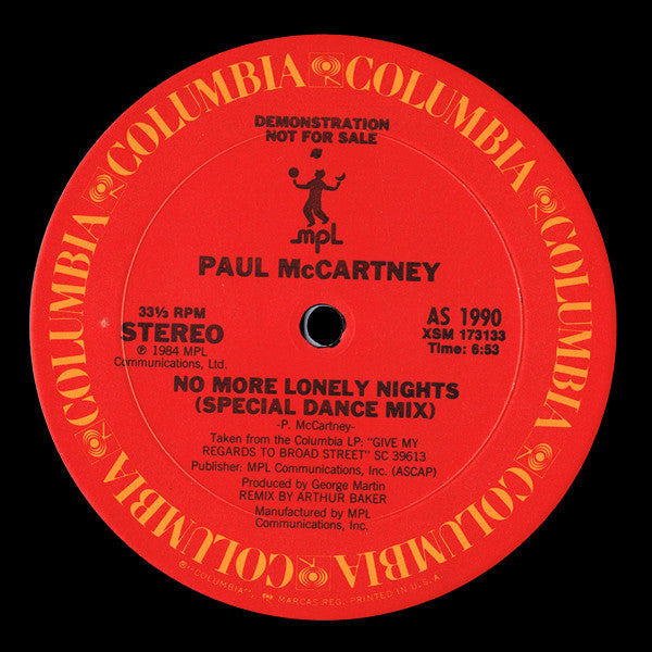 Taken from the Columbia Lp: "Give My Regards To Broad Street" SC 39613 Housed in a generic black sleeve with hype sticker.