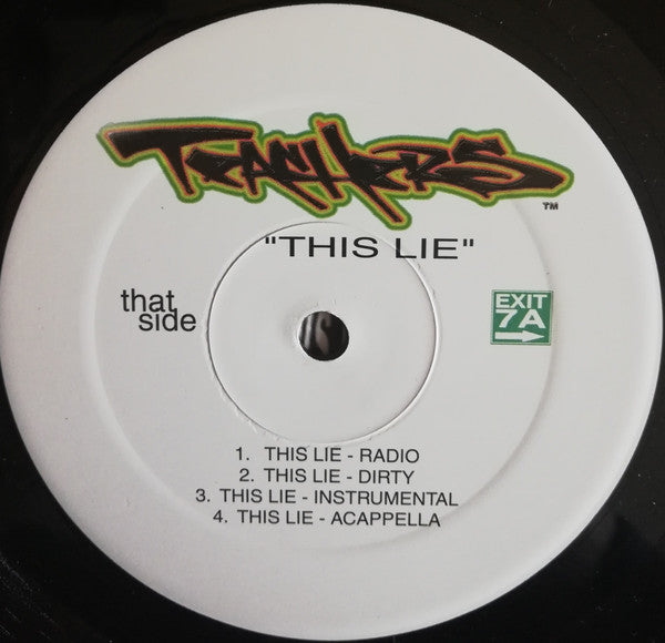 Although listed on the label, there is no acapella version of "This Lie". The record ends with "This Lie (Instrumental)". www.exit7a.com www.poorrighteousteachers.com