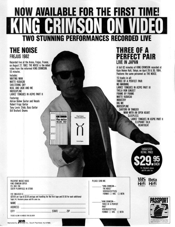 A1 to A2(ii) recorded at The Hit Factory in New York. Re-mixed to Sony Digital Stereo System at Marcus Studios, London. The basic tracks for B1, B2 were laid at The Hit Factory, New York in 1979. David Byrne's vocal was added at Island Studios, London. The Frippertronics loop for B2 was the first piece performed in concert at The Calgary Planetarium on August 8th 1979; for B1 the second piece, first house, at Madame Wong's, Los Angeles, July 25th 1979. B1 was released in its original form as "The Zero Of The Signified"; solo guitar added at Arny's Shack, Parkstone, England. Both B1 and B2 remixed to Sony Digital Stereo System at Marcus Studios, London. Network draws together the period 1984 to 1987. This compilation (P) 1985 EG Records Ltd. (c) 1985 EG Records Ltd The rim-print reads: Marketed by Jem Records, Inc. South Plainfield NJ. Printed in U.S.A. The small-print on back cover reads: Marketed by Jem Records, Inc. South Plainfield NJ. Printed in Canada Promo insert copied on Nekoosa Bond. Runouts are etched, except "STERLING" which is stamped.