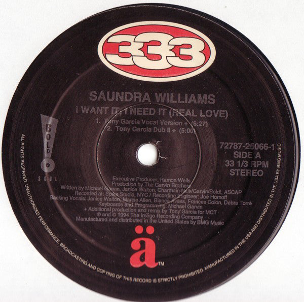 Saundra Williams - I Want It, I Need It (Real Love) (12") (VG+)