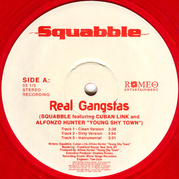Squabble Featuring Cuban Link And Alfonzo Hunter : Real Gangstas (12", Maxi, Red)