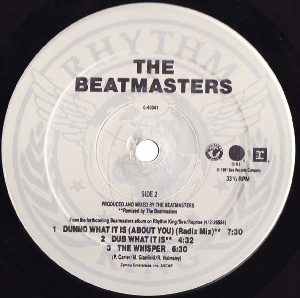 "Specially Priced Maxi-Single" From the Beatmasters album on Rhythm King / Sire / Reprise. Zomba Enterprises, Inc. ASCAP ℗ 1991 Sire Records Company