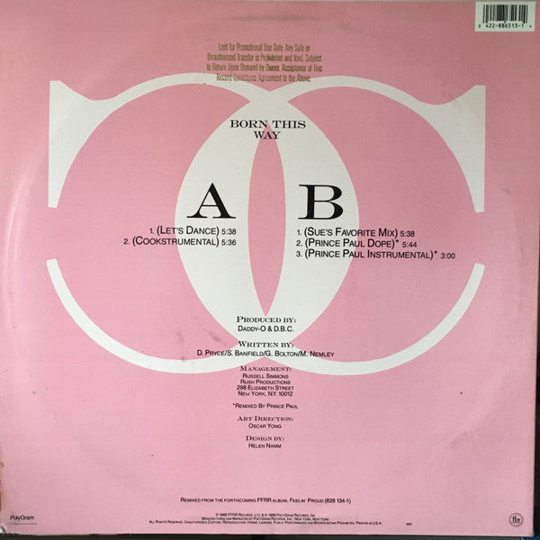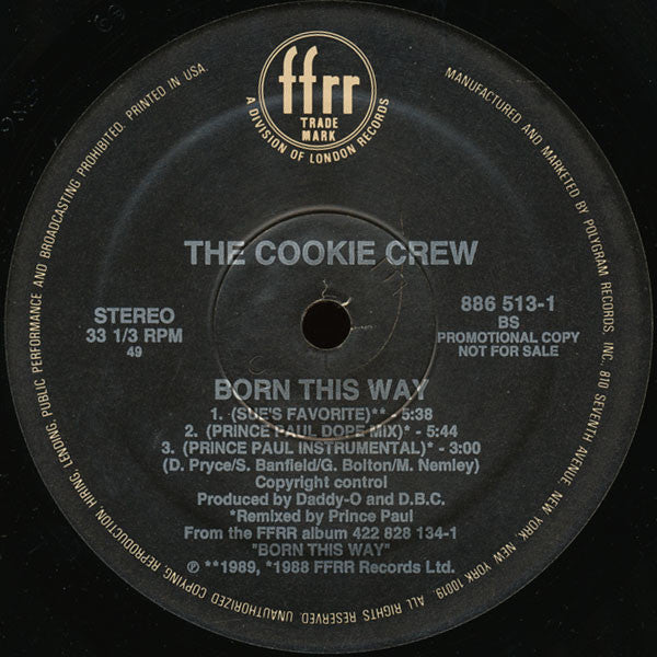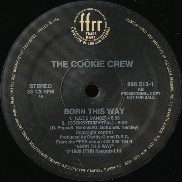 Issued in gold-stamped retail sleeve. Promotional Copy Not For Sale Copyright Control - All Songs From the FFRR album 422 828 134-1 "Born This Way" ℗ **1989, *1988 FFR Records Ltd. Printed in USA.