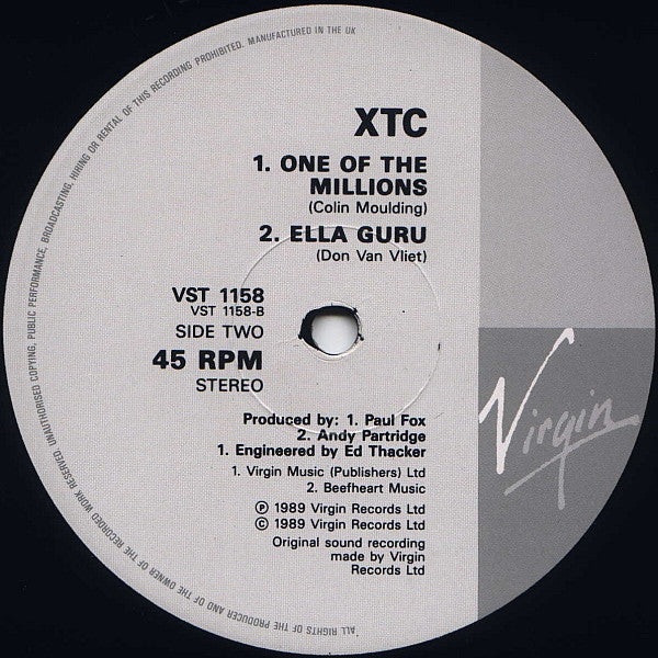 ℗ 1989 Virgin Records Ltd © 1989 Virgin Records Ltd Original sound recording made by Virgin Records Ltd Tracks A and B1 - Virgin Music (Publishers) Ltd Track B2 - Beefheart Music