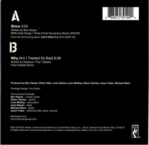 Ben Harper & The Innocent Criminals : Shine (7", Single, Ltd)
