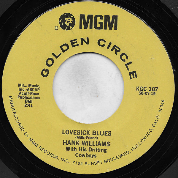 Hank Williams With His Drifting Cowboys : Your Cheatin' Heart (7", Single, RE, PRC)