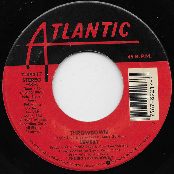 label variation, non picture sleeve version, differs from [r=1185752 A - Pub., Calloco Music / Hip Trip Music, BMI Co-Produced by Vincent Calloway for Calloco, Inc. B - Pub., Trycep Music Publishing Co. Inc. / Ferncliff Music BMI Produced by Gerald Levert and Marc Gordon for Trevel Productions Taken from the Atlantic Album: Levert - The Big Throwdown ; LP 81773-1; Cassette 81773-4; Compact Disc 81773-2 ℗ © 1987 Atlantic Recording Corporation Manufactured By Atlantic Recording Corp. A Warner Communications Company