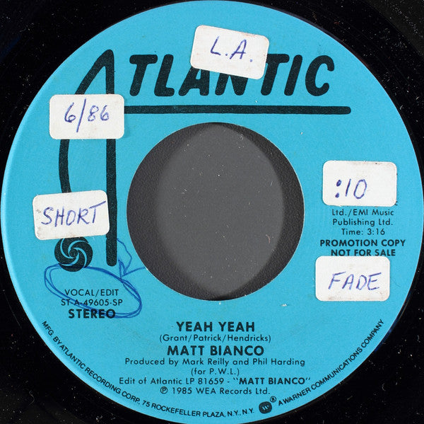 Promotion Copy - Not For Sale. Different spelling of titles than another promo issue (pressed by Allied) found here: [r=8907106 Pressed by Specialty (-SP suffix on labels). Side A: Edit from Atlantic LP 81659 "[r=3006108". Side B: From Atlantic LP 81659 "[r=3006108".