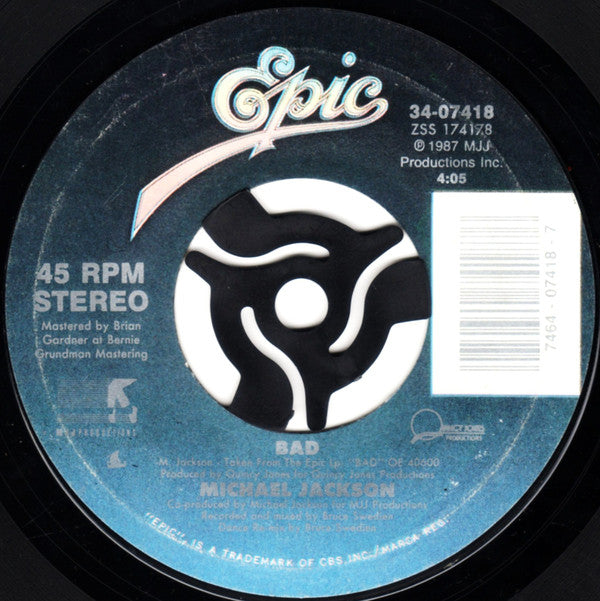 This version was issued in a generic (non picture) "Epic" sleeve. Produced by Quincy Jones for Quincy Jones Productions. A-Side: Co-produced by Michael Jackson for MJJ Productions. Mastered by Brian Gardner at Bernie Grundman Mastering.