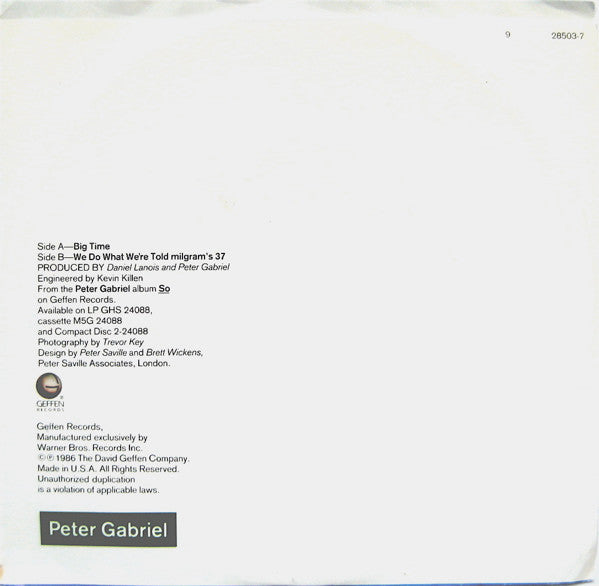 Peter Gabriel - Big Time (7", Single, SP ) (VG+)