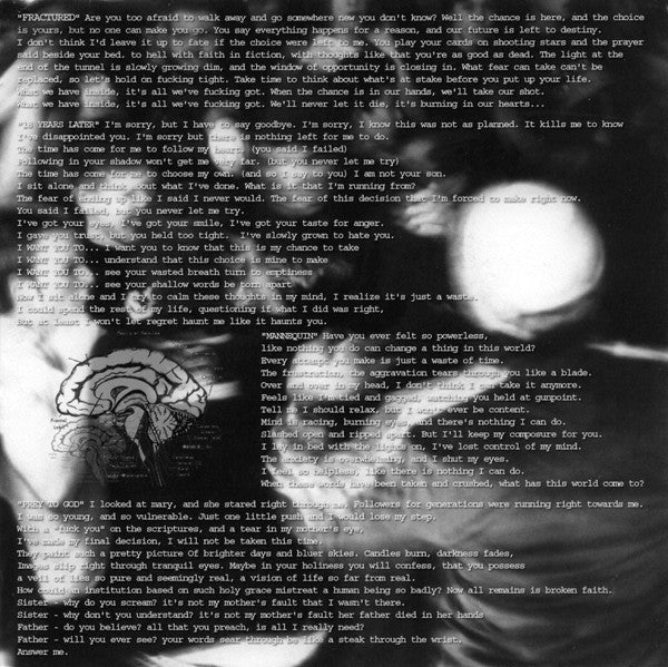 Limited edition of 1000 copies, 700 of those pressed on blue marbled vinyl. Includes two stickers, a fold-out poster for Survivors' CD EP release entitled "Death Cures Addiction", and several mail-order inserts advertising other releases on Knife Or Death. Mike Carroll's name is misspelled in the credits as "Mike Carrol".