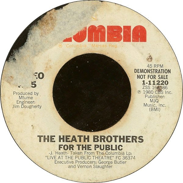 Taken From the Columbia Lp: "LIVE AT THE PUBLIC THEATRE" FC 36374 Publisher: MJQ Music, Inc. (BMI) Demonstration - Not For Sale Same track pressed to both sides