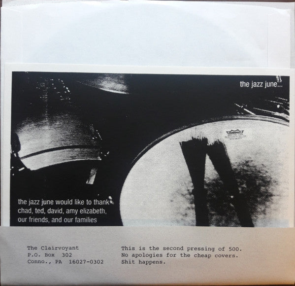 Released with hard-paper insert (The Jazz June...) and Clairvoyant catalog insert Folded sleeve. Printed on back/front on gray paper with Clairvoyant address on back Second pressing of 500, per sleeve Tracks numbered 1,2,3 as on runout. No numbering on sleeve.