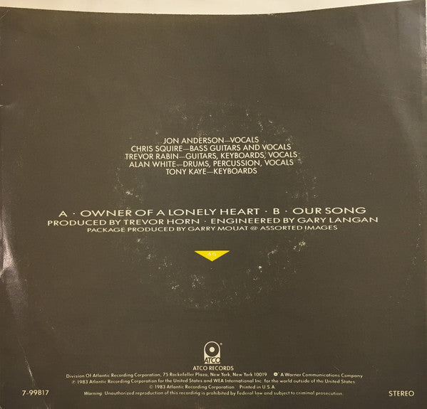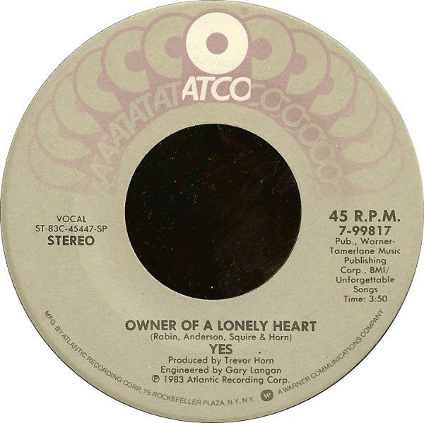 Yes : Owner Of A Lonely Heart (7", Single, SP )
