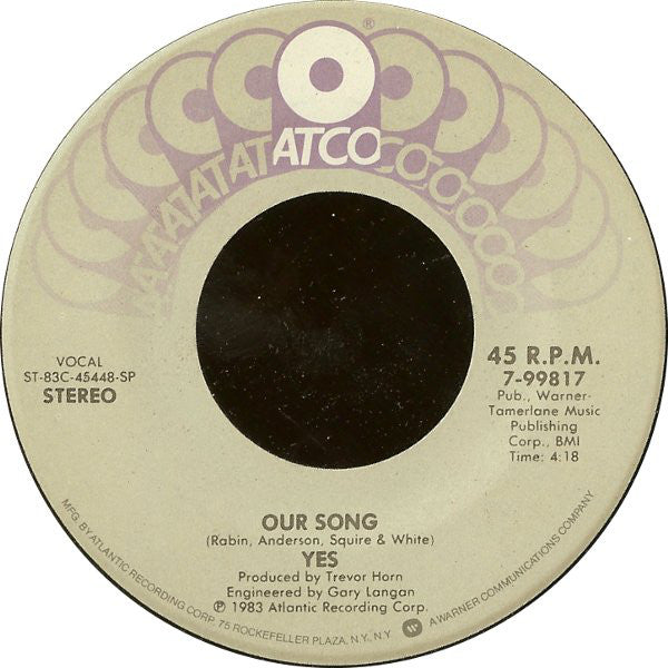 Yes - Owner Of A Lonely Heart (7", Single, SP ) (VG+)