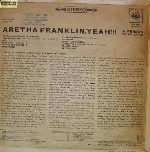 Sub title: Aretha Franklin In Person With Her Quartet