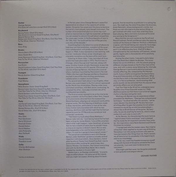 Recorded at Van Gelder Studios, July and December, 1975. Label with big side number & address under the CTI Records logo.