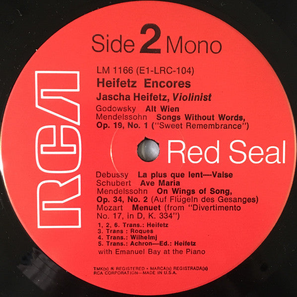 Thin flexible vinyl, much like "Dynaflex" Cover printed like original 1952 version would be. Label as RCA Victor Red Seal on cover and as RCA Red Seal on labels. Red RCA Red Seal labels. Made in U.S.A.