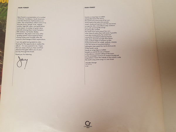 Produced by John Keonig and Jay Hoggard. Recorded at Ocean Way Recording, Hollywood, November 1980. Recording Engineers: Allen Sides and Mark Ettel. Assistant engineer: Tony Chiappa. Mixed by Allen Sides, Mark Ettel, John Koenig and Jay Hoggard, January, 1981. Disc Mastering by Bernie Grundman. Matrix by Richard Doss, Sheffield Labs. On sleeve rear: ℗ 1981 Contemporary Records Inc. Album cover, back and inner sleeve © 1981 Contemporary Records Inc. Contemporary Records Inc · PO BOX 2628 · Los Angeles · CA · 90028
