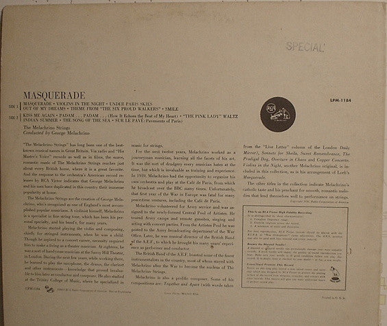 The Melachrino Strings - Masquerade (LP, Album) (VG+)