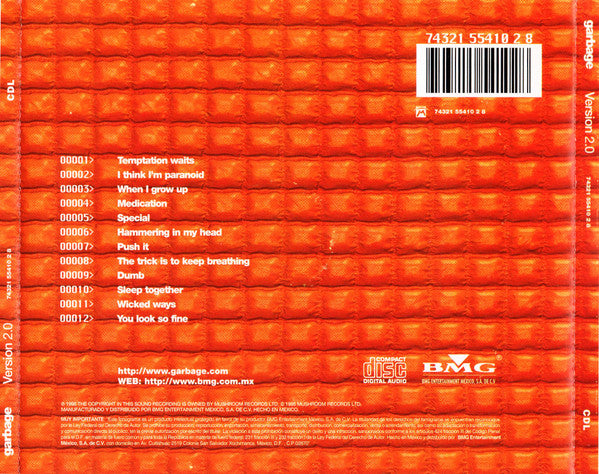 Recorded and mixed at Smart Studios, Madison, Wisconsin, USA. Mastered @ Masterdisk, NYC, USA. "Push It" contains an interpolation of "Don't Worry Baby" written by Brian Wilson and Roger Christian. ℗1998 The copyright in this sound recording is owned by Mushroom Records Ltd. ©1998 Mushroom Records Ltd. Distributed by the local company, a unit of BMG Entertainment Made Mexico Packaging: Transparent tray jewel case with a 8-page booklet.