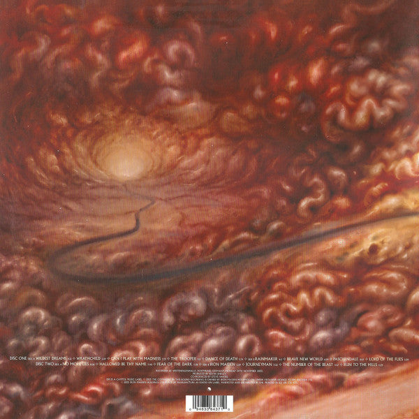 Comes in gatefold sleeve. Hype sticker applied directly. Heavyweight discs held in gloss black paper inners with no text. Recorded at Westenfalenhalle, Dortmund Germany 24th November 2003. Some copies from EMP Mailorder in Germany came with a free Iron Maiden sweatband (black with red/white Logo). Sleeve - "Printed in EU". Label - "Made in the E.U." Runouts are etched.